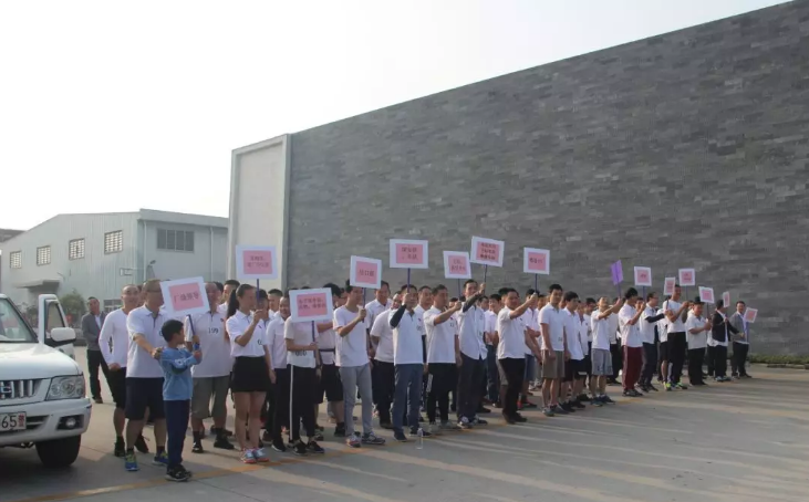 準(zhǔn)備出發(fā)~,公司職工身著整齊的白色T恤,組成整齊劃一的方陣,昂首闊步向前奔跑,以堅(jiān)定豪邁的步伐奔向“錦犬”之旅。