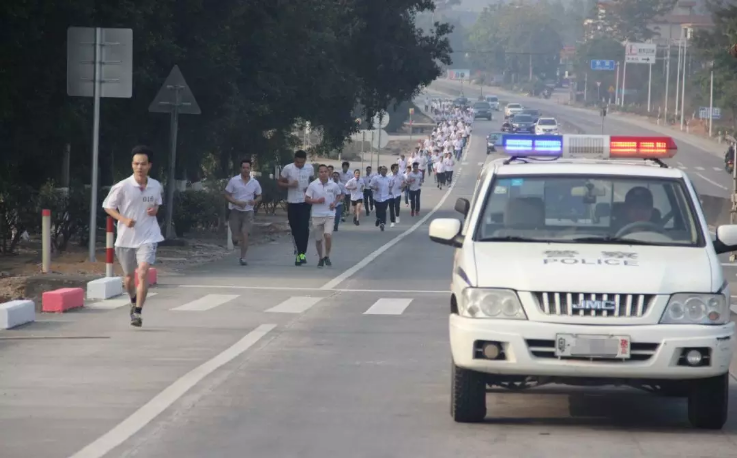 長跑過程中,全程有警車跟蹤式保駕護(hù)航和120緊急救援車做預(yù)防意外準(zhǔn)備