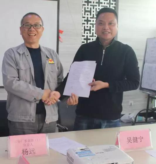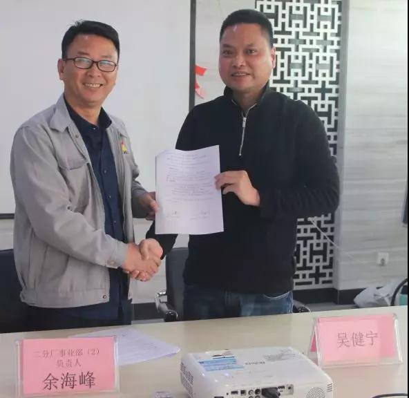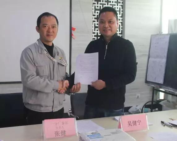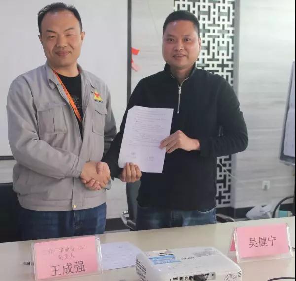 總經(jīng)理吳健寧與事業(yè)二部負責人楊遠簽暑協(xié)議