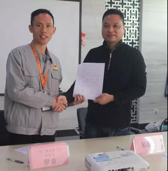 總經(jīng)理吳健寧與事業(yè)三部負責人羅章簽暑協(xié)議