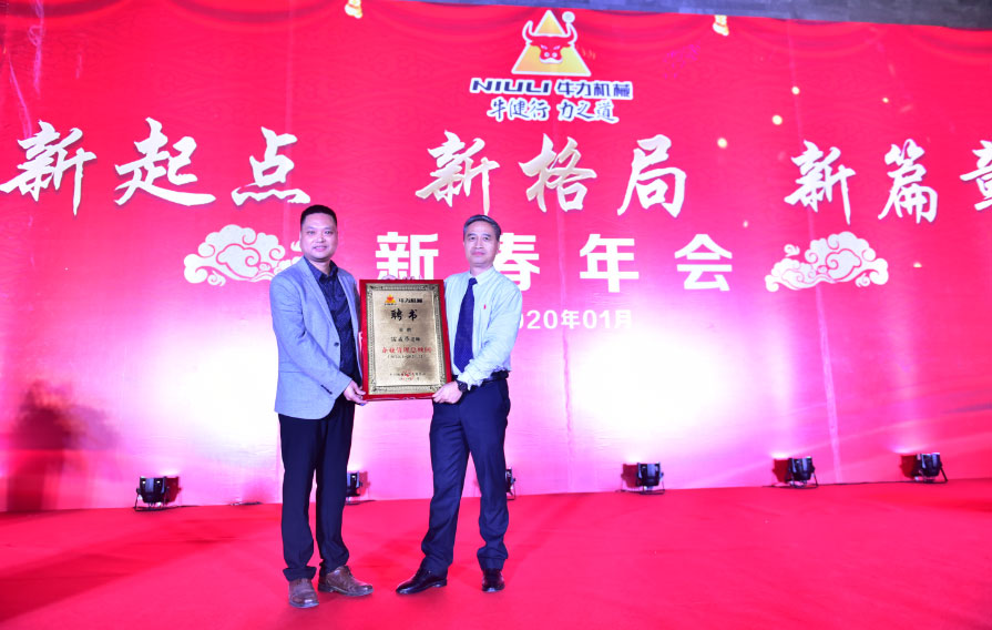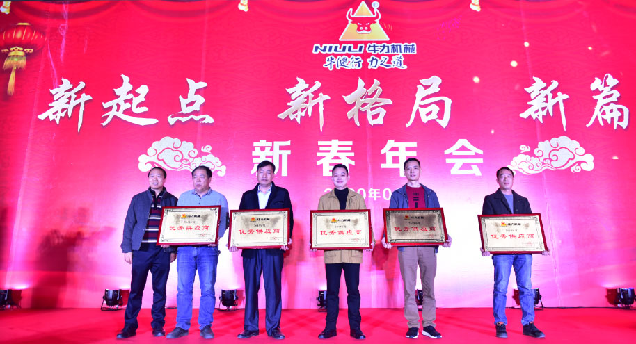 副董事長胡鏡明代表牛力機械向2019年5位優(yōu)秀供應(yīng)商代表頒發(fā)優(yōu)秀供應(yīng)商牌匾。