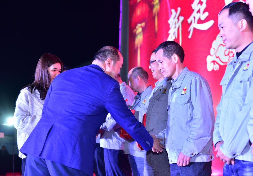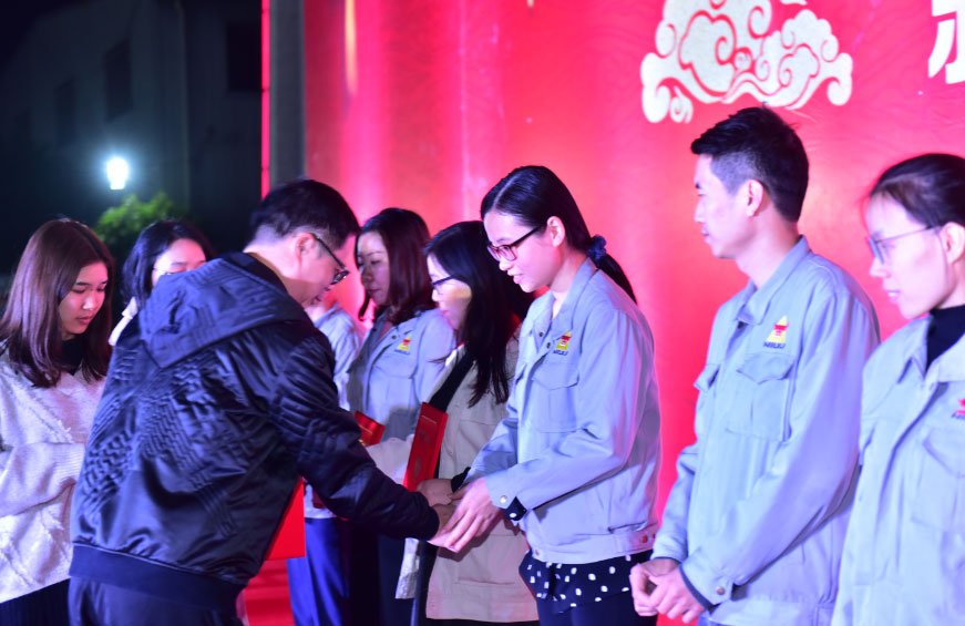 股東代表宋有南先生和伍永勤先生分別向2019年18位優(yōu)秀員工頒發(fā)獎勵