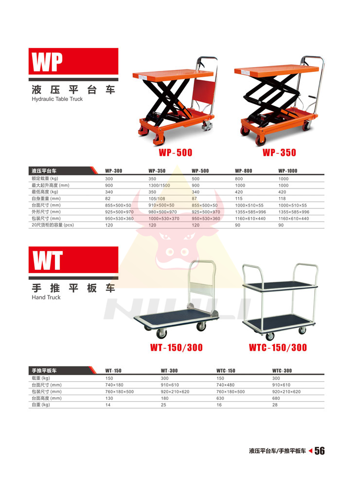 WP液壓平臺(tái)車采用高強(qiáng)度鋼材制作而成,設(shè)計(jì)結(jié)構(gòu)合理,安全平穩(wěn)可靠,內(nèi)裝安全閥,全密封油缸,手動(dòng)控制液壓系統(tǒng)升降,操作方便簡(jiǎn)捷。 配有導(dǎo)向輪向輪節(jié)省操作者的體力,并能保護(hù)載重輪與托盤載重輪。