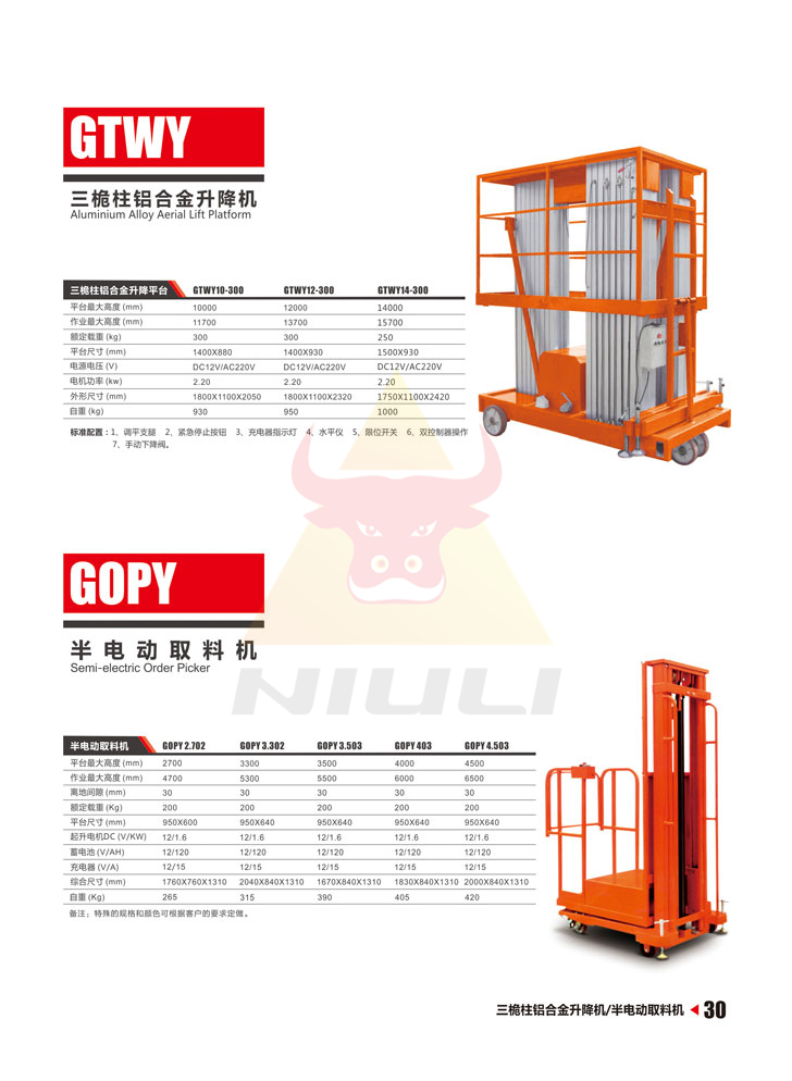 三桅柱鋁合金升降機(jī) GTWY10-300 GTWY12-300 GTWY14-300