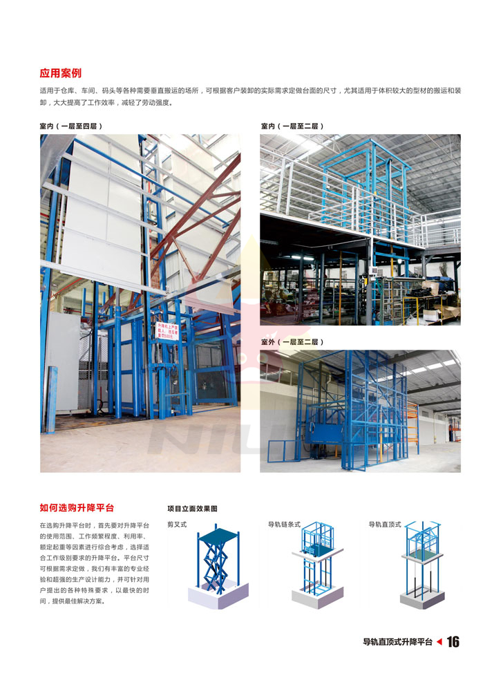 導(dǎo)軌直頂式升降平臺(tái)為無軟牽引的采用同步伸縮式油缸的液壓升降平臺(tái),直頂式平臺(tái)為硬性鏈接,無鏈接牽引,無絞軸鏈接。主要用于中高樓層及作業(yè)現(xiàn)場復(fù)雜的場所裝載升降貨物。