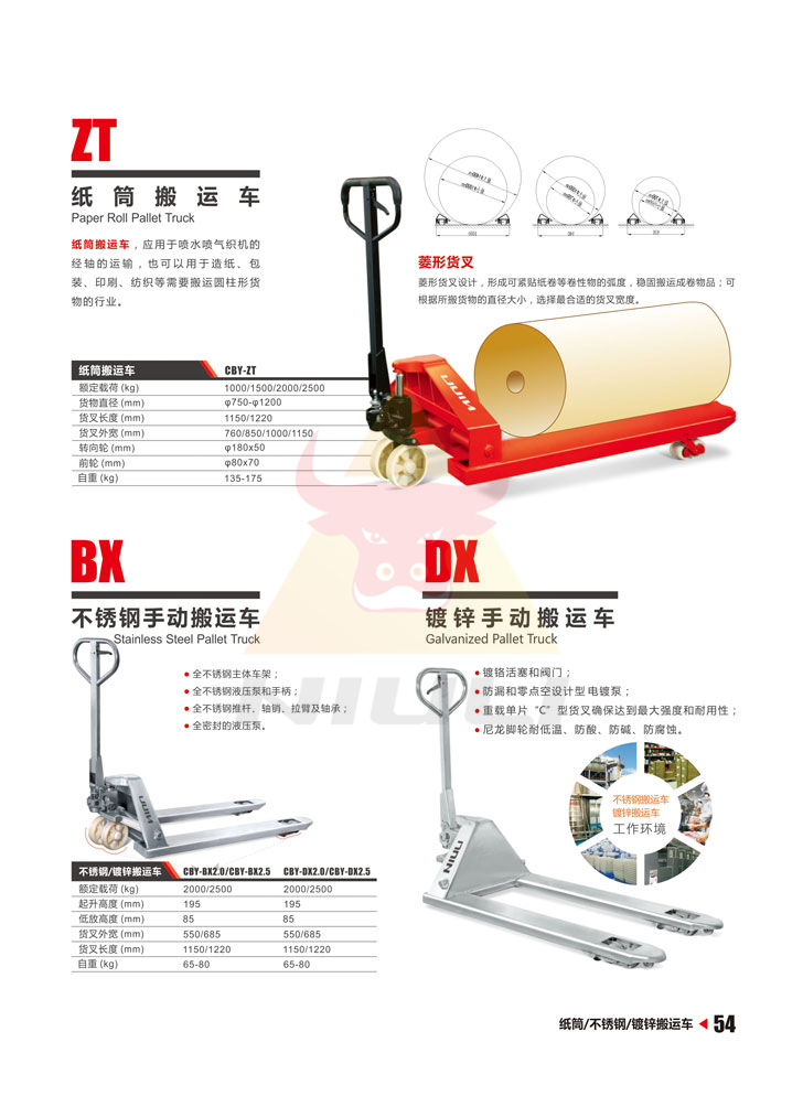 鍍鋅搬運(yùn)車油缸采用防漏設(shè)計(jì),車架、手把、油缸等裸露在外部的零件全部經(jīng)過鍍鋅處理,配置不銹鋼軸承,耐磨尼龍輪,抗腐能力強(qiáng)。適用于冷庫及潔凈度、抗腐蝕性要求比較高的場(chǎng)所。