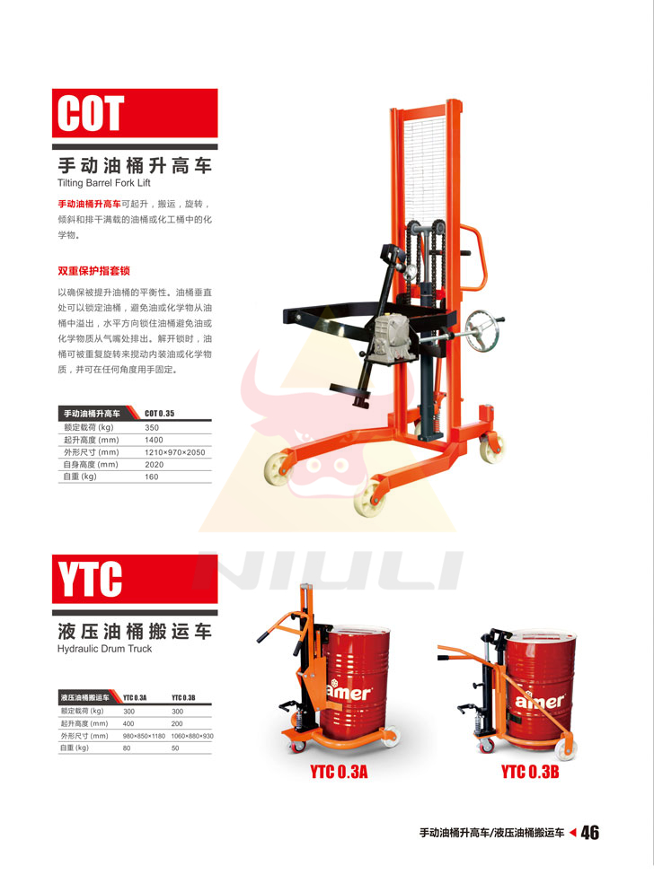 YTC0.3A油桶搬運車可搬運、起升油桶。具有鎖定油桶、升降平穩(wěn)、結構緊湊、操作簡便等特點。