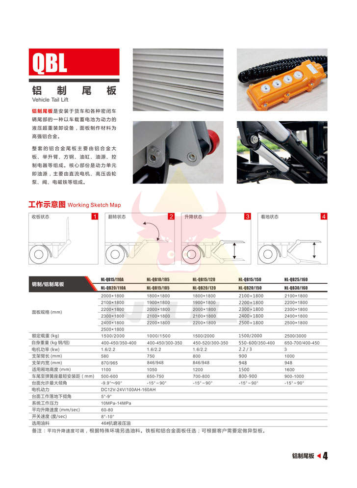 鋁合金尾板是安裝于貨車和各種密閉車輛尾部的一種以車載蓄電池為動力的液壓起重裝卸設(shè)備,面板制造材料為高強(qiáng)度鋁合金。