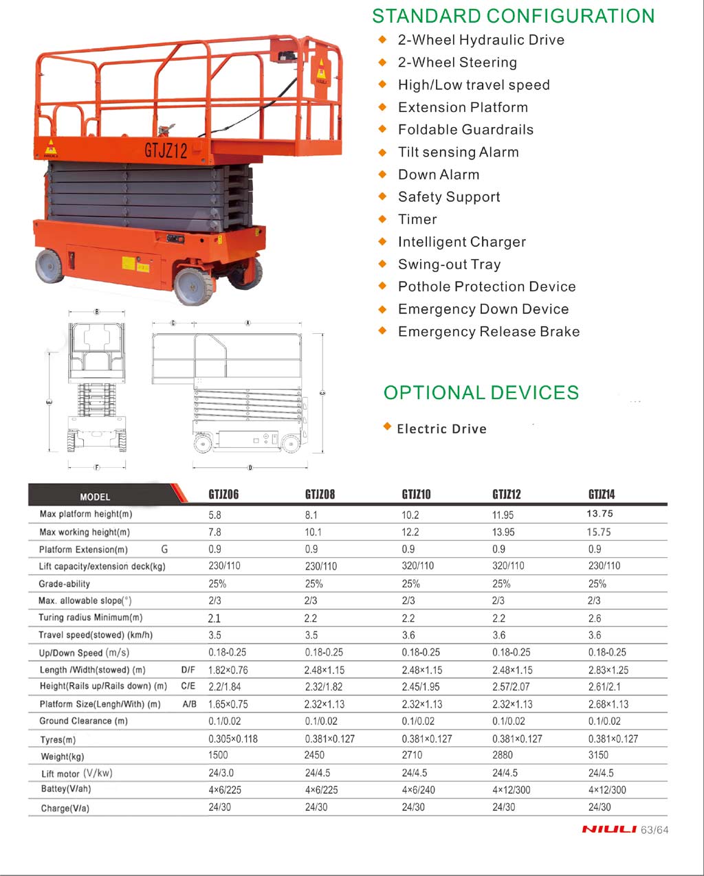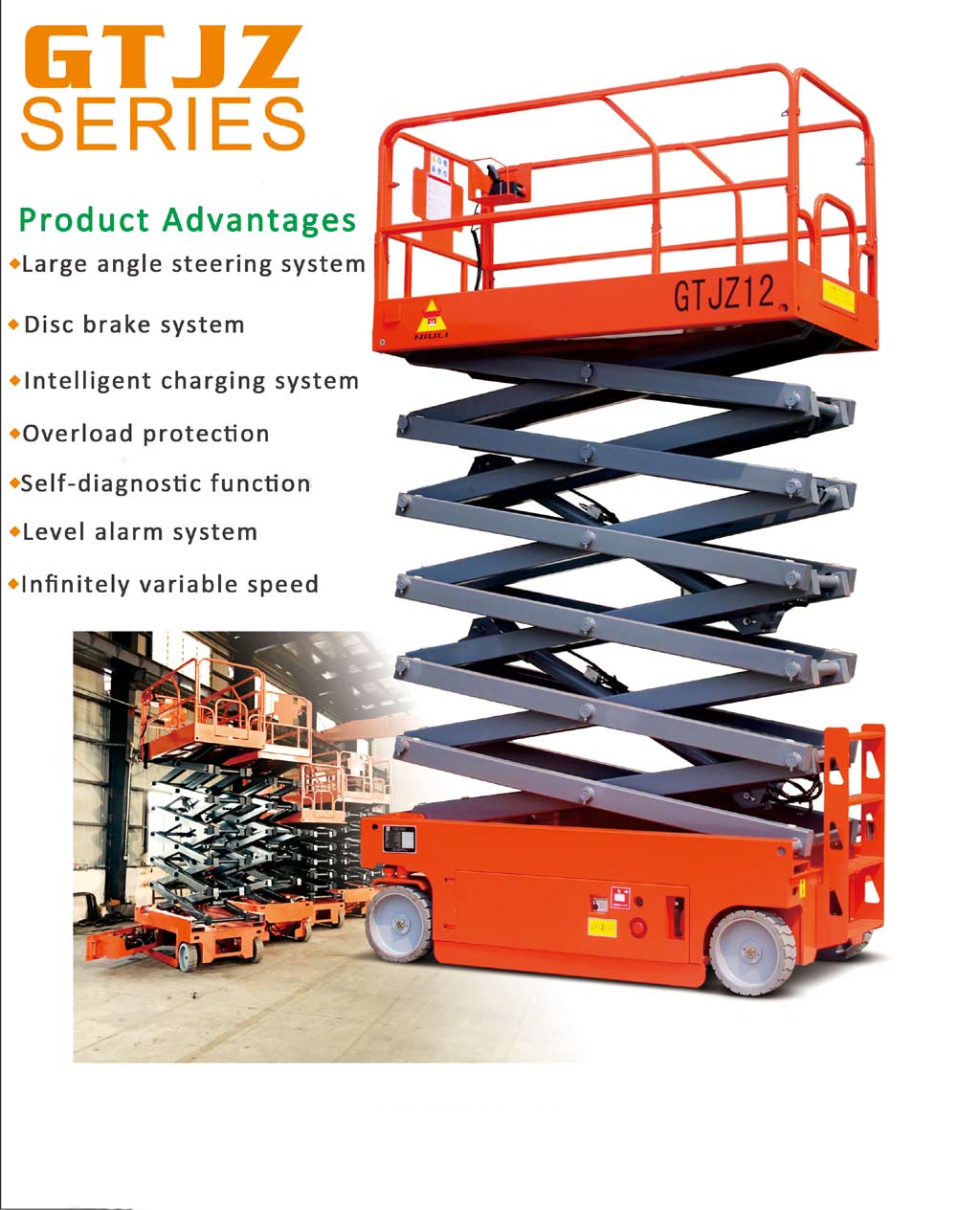 The series’plaform height is from 6m to 14m with the features of low sound,non-air pollution,anti-slide,and non-scratch ground.They are widely usetor construction and decoration.